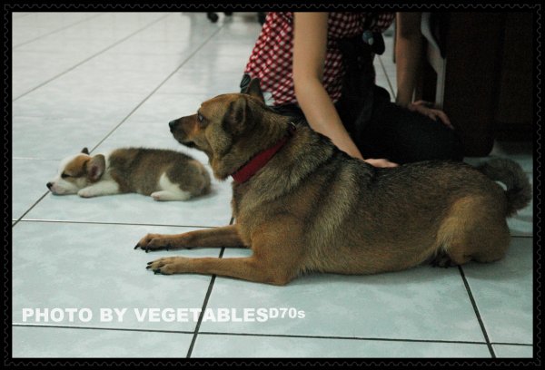 旺旺在,mo就乖了一點,但還是不時會躲在桌邊汪個一二聲~挑釁旺旺