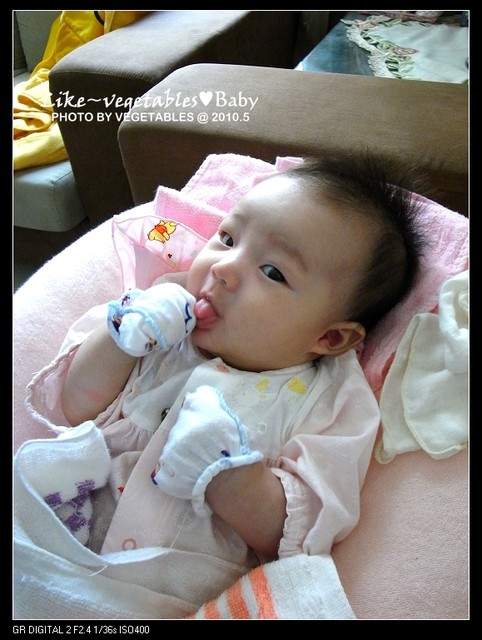 想要讓她吃奶嘴,因為有時根本不餓就只是想咬東西,如果肯吸奶嘴就比較好哄睡,但安安只愛媽媽牌奶嘴,超討厭吃其它牌奶嘴,一塞就大哭,偶而心情好時可以把奶嘴當口香糖咬,就是不肯吸~吼