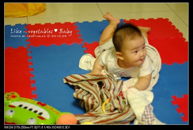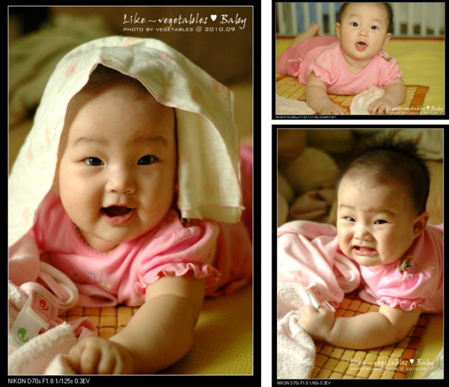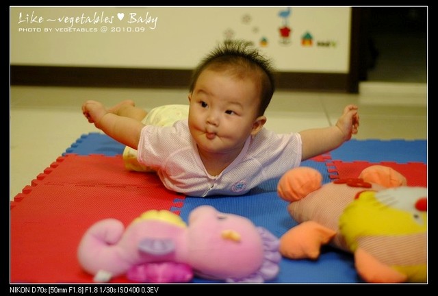 雖然照片拍很多啦!但還不會爬跟坐,PO斯就少了好多喔!