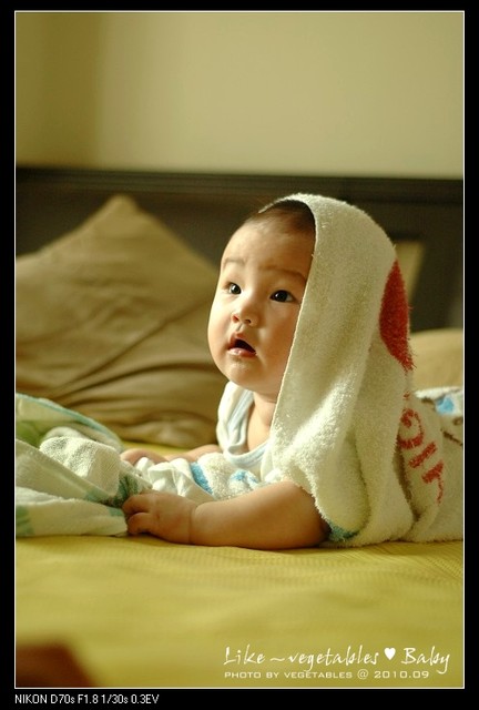 很想拍電視上出現的那種寶寶出浴照片~不過菜安安都不配合,只好假裝一下