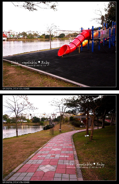 一旁有大人用的戶外健身器材,也有小朋友喜歡的溜滑梯跟翹翹板