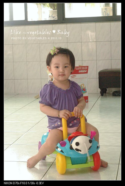 變身成學步車時~它很穩,不會前翻喔!!菜安安在家裡的那台木製的,因為底座比較短,所以一用力就有前翻的可能