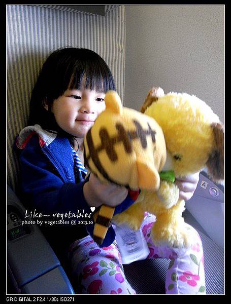 去沖繩時菜安安喝機上飲料就因為沒蓋子,不小心灑了一點到身上
