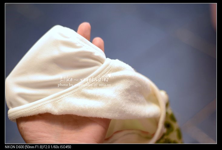 從下面看進去,吸水的四層紗布就像是件小內褲