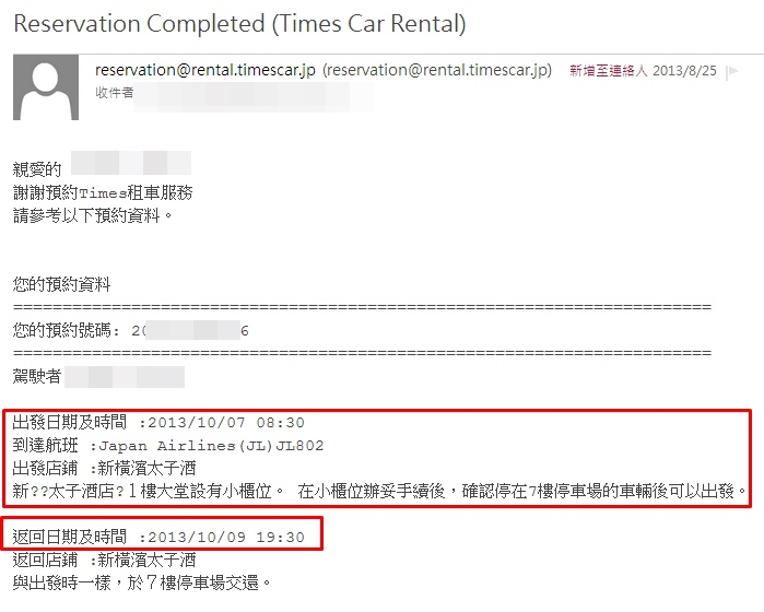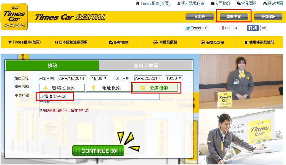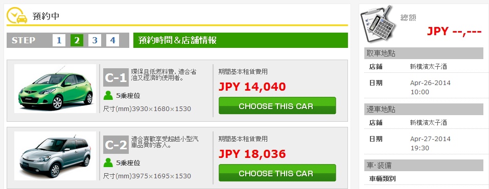 TIMES CAR是目前日本第一大的租車公司,我是挑官網有繁體中文的來租