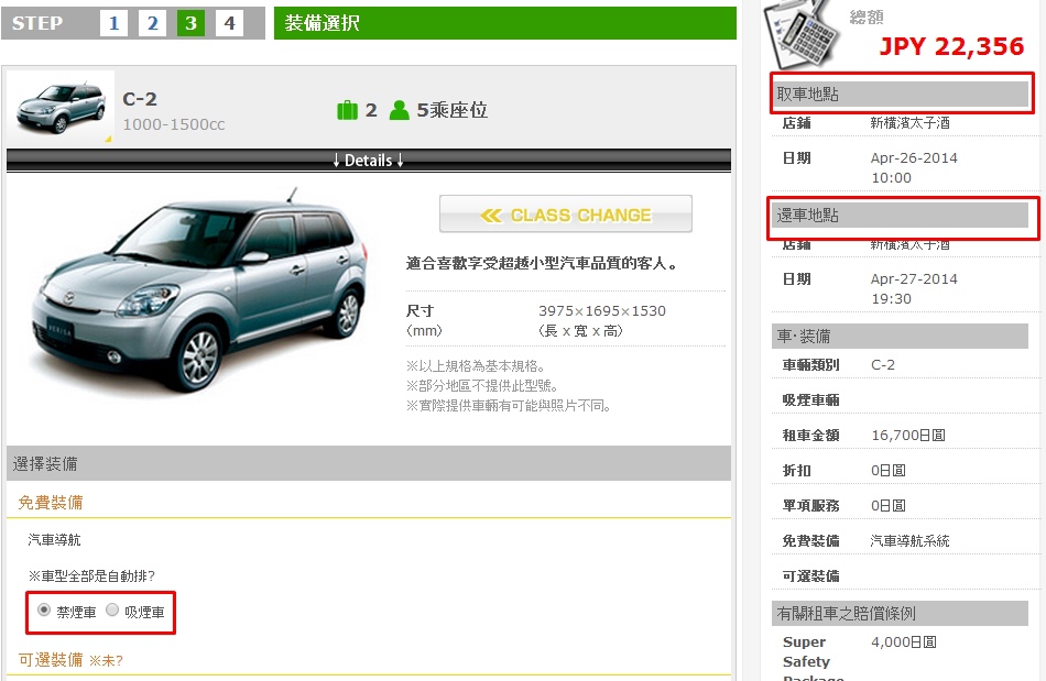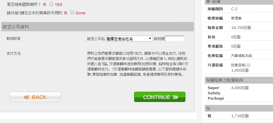 *像是安全座椅跟禁煙車都可以在這裡選擇,我喜歡選禁煙車
